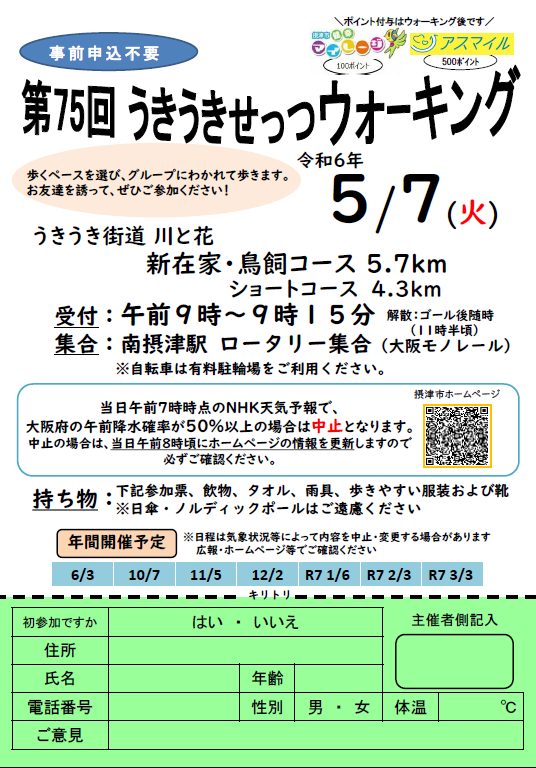 - うきうきせっつ健歩会、摂津市保健福祉課