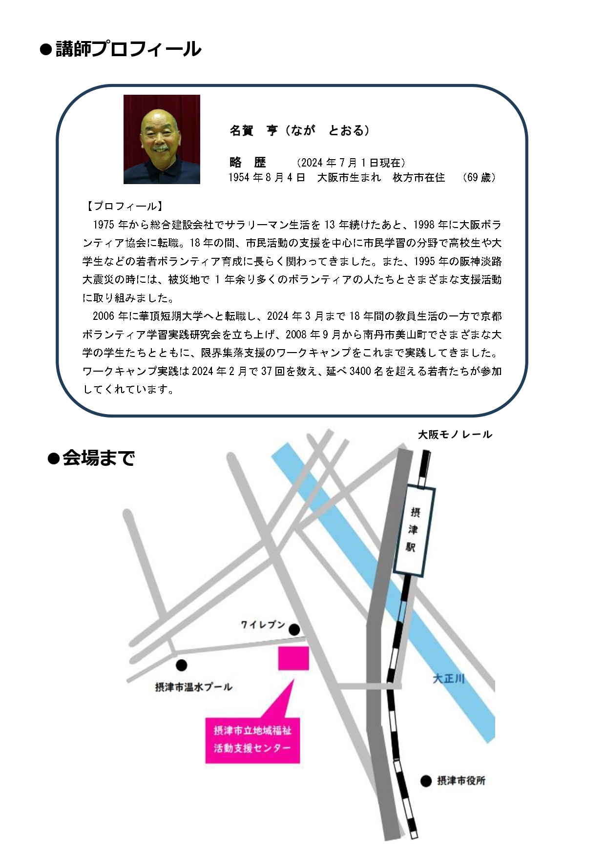 摂津市で将来、更に増加すると考えられる外国人労働者が、安心して住み続けられる街について意見交換をし、パネラーとともに認識を深めて共生のためのヒントを見つけませんか。 【プログラム】 〈第一部〉午後2時~午後3時 基調講演 〈第二部〉午後3時~午後4時 パネルディスカッション